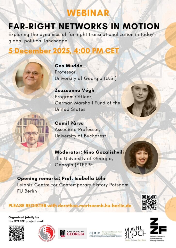 The webinar is jointly organized by the STEPPE project (Centre Marc Bloch), the Leibniz Centre for Contemporary History Potsdam (ZZF), the University of Georgia, and the German Marshall Fund of the United States.